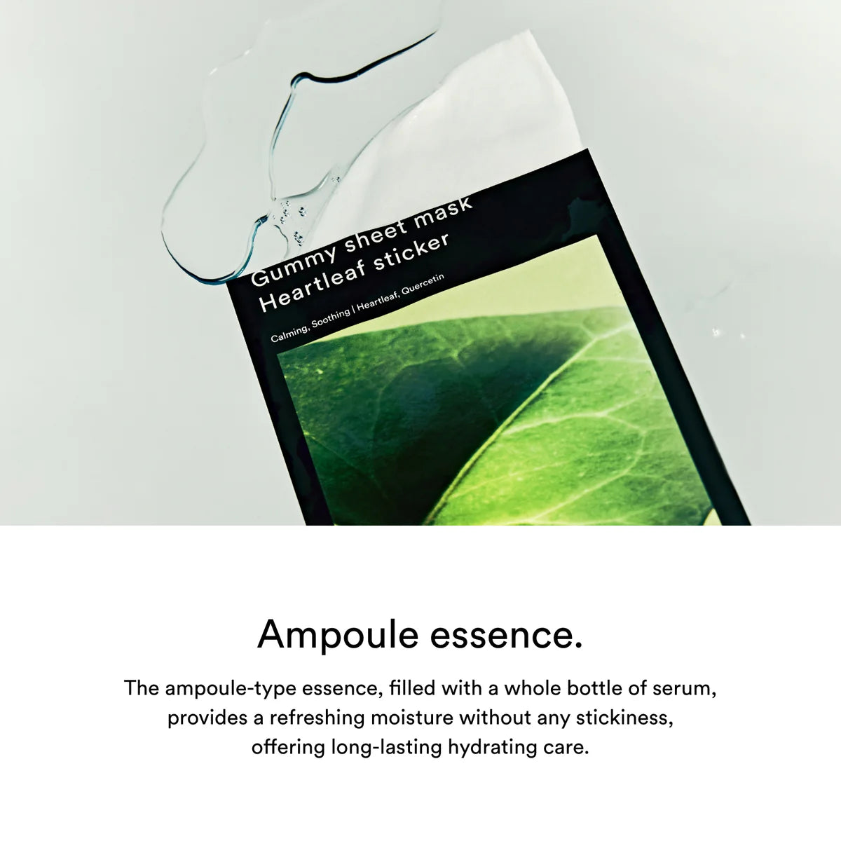 Calm sensitive and breakout-prone skin with the ABIB Gummy Sheet Mask Heartleaf Sticker. The thick, gel-like sheet locks in heartleaf extract to reduce inflammation, soothe blemishes, and purify the skin.