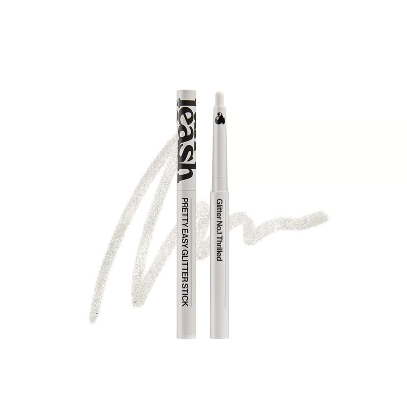 Add instant sparkle with UNLEASHIA Pretty Easy Glitter Stick. This retractable glitter pencil glides on smoothly for precise shimmer on eyes or highlight points.
